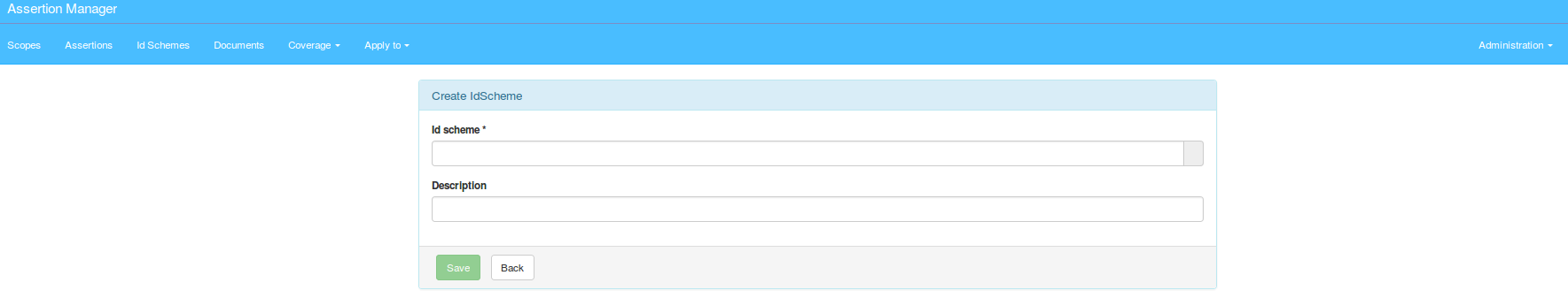 As shown on picture above, the administrator user can create a new IdScheme.