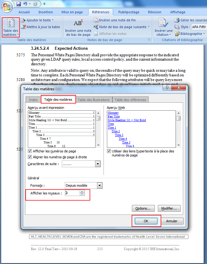 This step requires to use Microsoft Word if the document is in doc/docx format. With OpenOffice / LibreOffice the content may be shift, and the page number won’t be the same as in the official documentation.