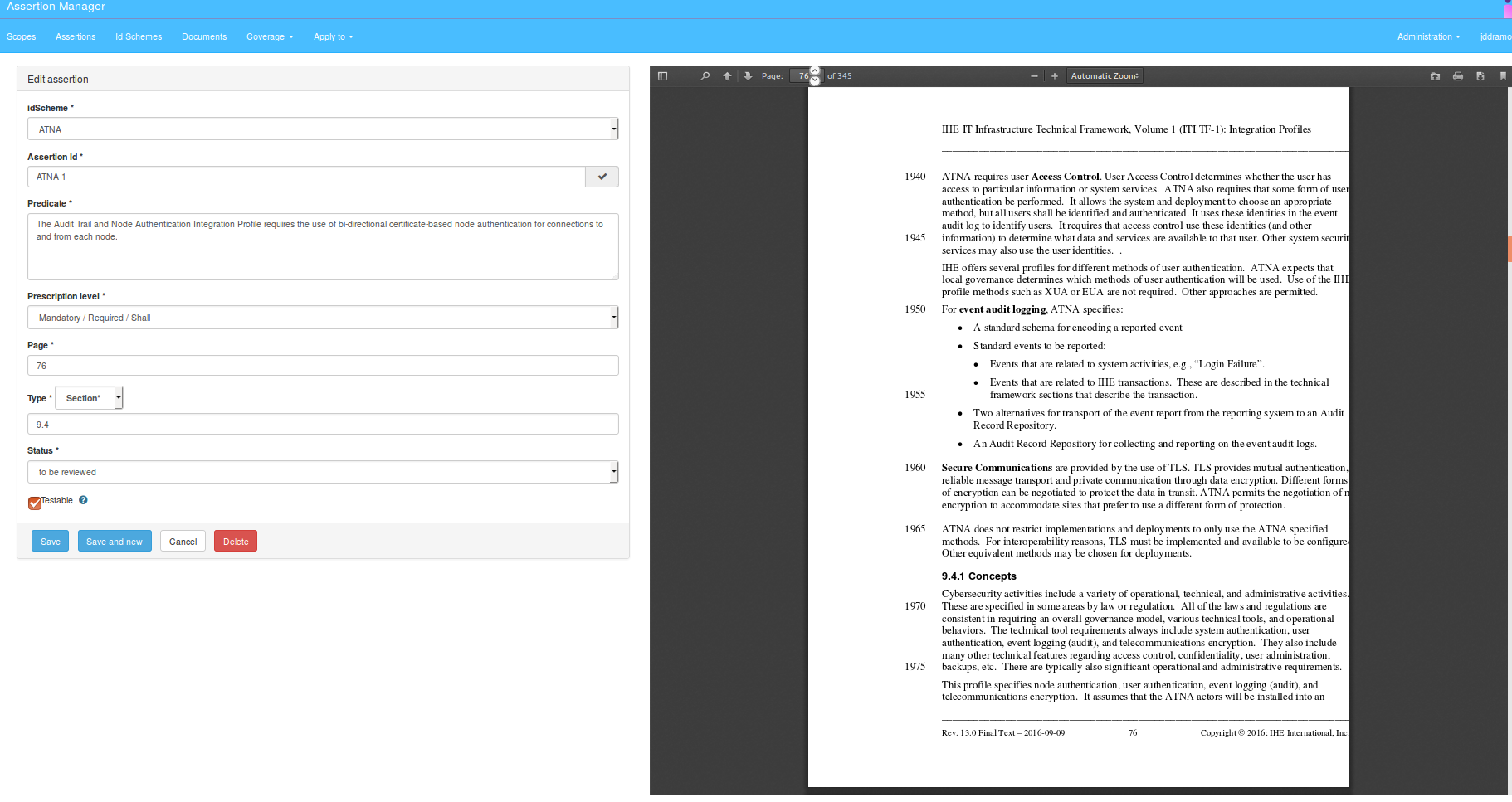 Assertion Manager is the Gazelle tool to handle the assertions that vendors shall respect to be compliant with a profile. Each profile is identified with a unique idScheme, which is associated with a PDF document, the official reference of the profile.