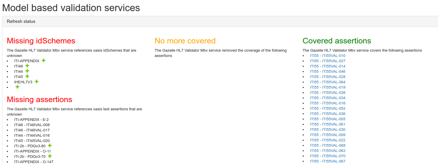 Missing assertions: Assertions that are covered by the service but not in Assertion manager.