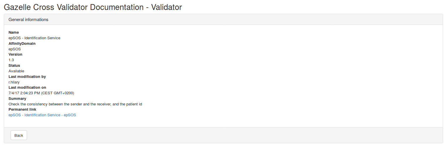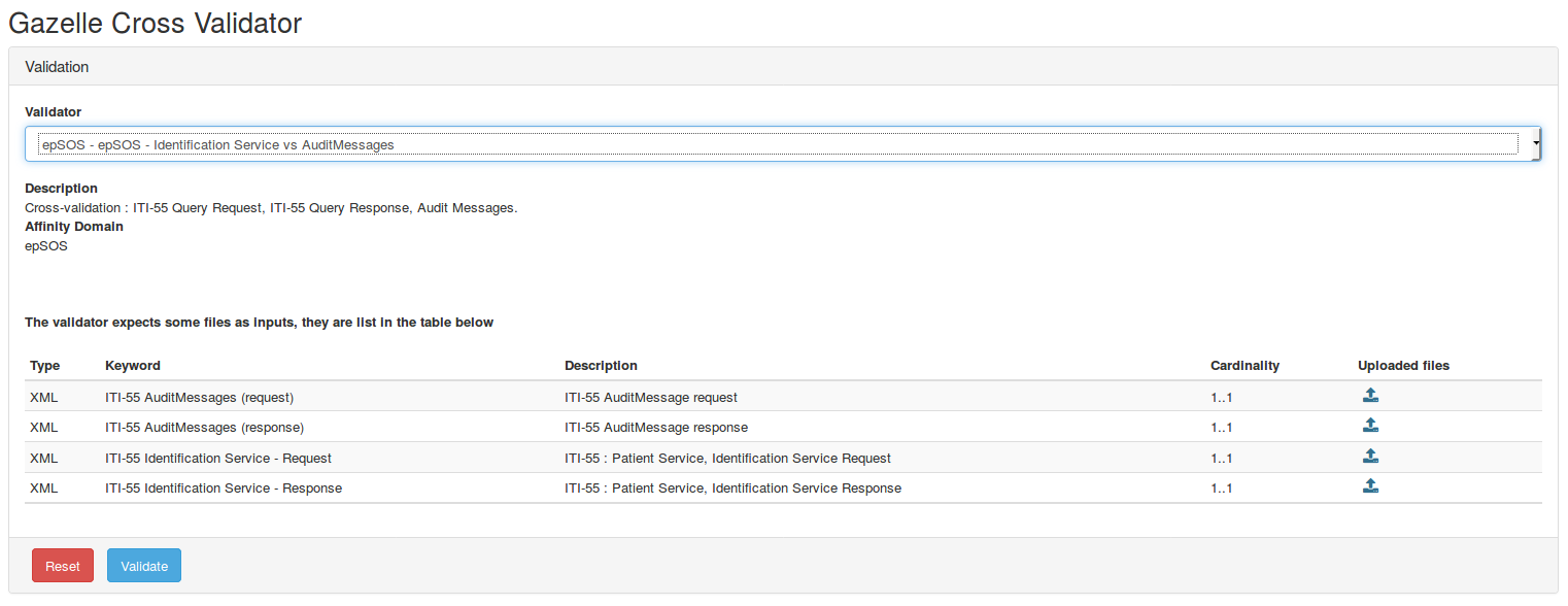 The Gazelle X Validator module has been developed in order to be able to check the consistency of a document and/or a message in the context in which it has been produced. That means that we are not going to check the conformance of the message syntax and content against the specifications and underlying standards, conformance validation tools exist for this purpose. In the contrary, the Gazelle X Validator takes at least two files (documents, messages) and checks that they respect a set of rules which have been clearly defined, using one file as a reference to check the correctness of the others.