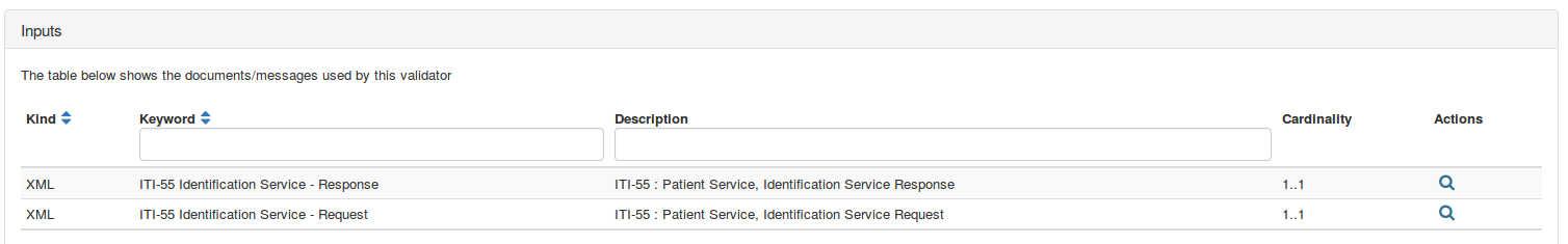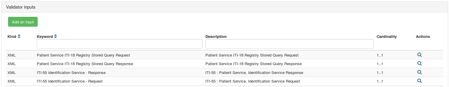 For information purpose, the list of inputs declared at the validator level as well as its configuration are displayed.