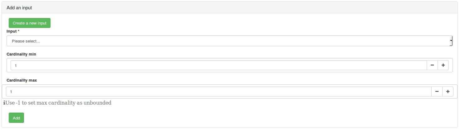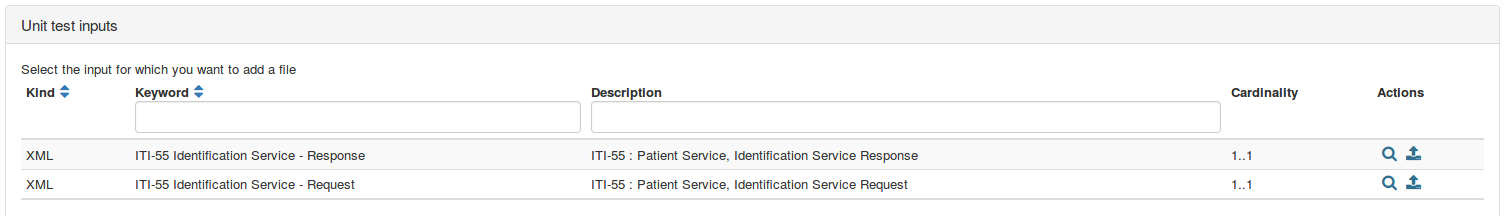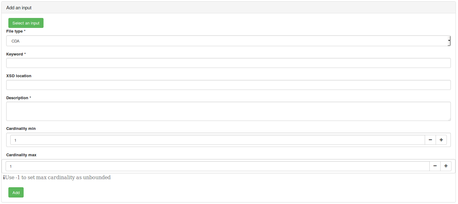 To add a file, click on the “Add a file” button, the list of inputs used by the rule are displayed, choose one (upload file icon).