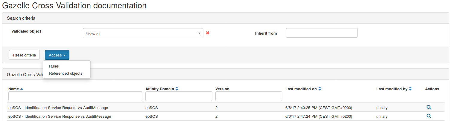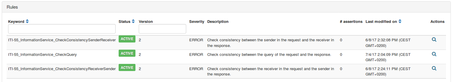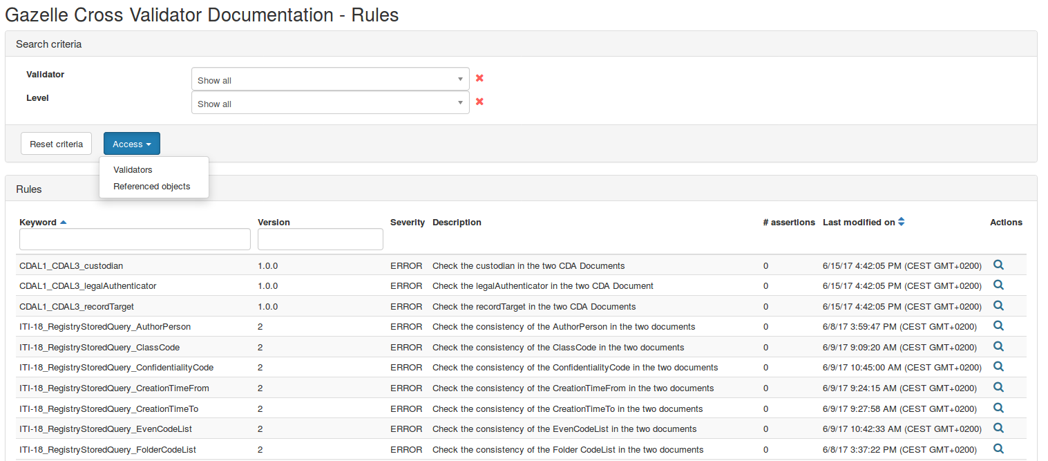 Illustration 32: Gazelle X Validator - Extract from the Manage rules page