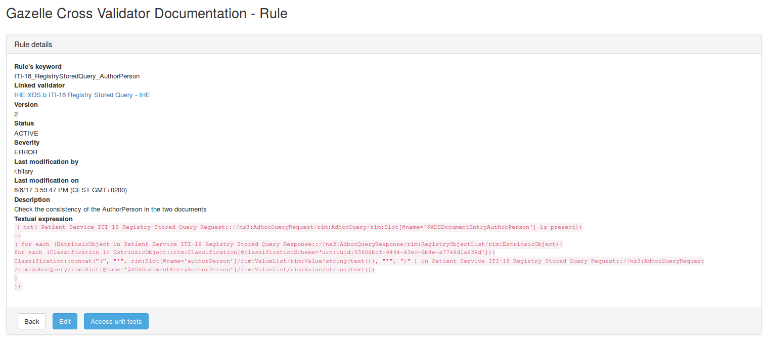 Illustration 36: Gazelle X Validator - Browse unit tests for rules