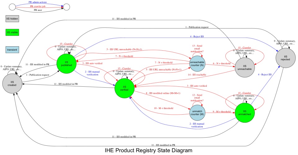 - Black lines are actions performed by users that are registering IIS in the PR.