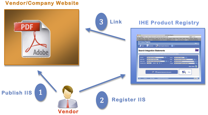 - Vendor registers the IIS in the Product Registry, indicating the content of the IIS (actors, profiles, …) and the URL of this document on the company website