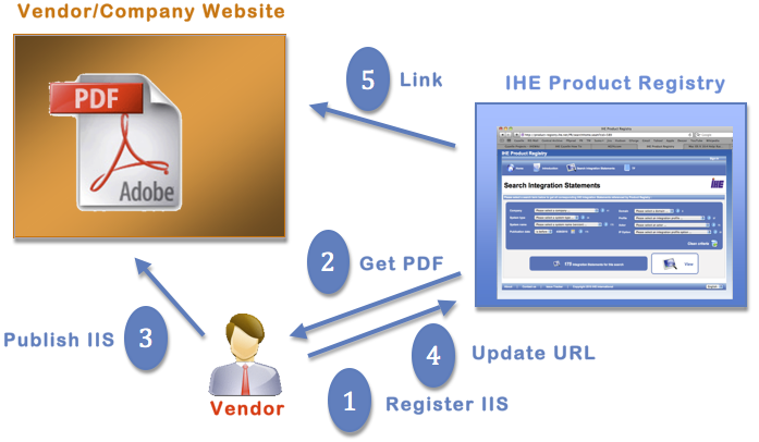 - Vendor updates the declaration of the IIS within the Product Registry updating URL to the published IIS on the company website.