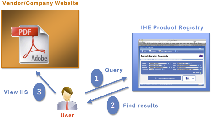 The IHE Product Registry is a way to register and search products supporting IHE Profiles with published IHE Integration Statements. IHE Integration Statements are documents prepared and published by vendors to describe the conformance of their products with the IHE Technical Framework. They identify the specific IHE capabilities a given product supports in terms of IHE actors and integration profiles. Users familiar with these concepts can use Integration Statements to determine what level of integration a vendor asserts a product supports with complementary systems and what clinical and operational benefits such integration might provide. IHE provides a process for vendors to test their implementations of IHE profiles. The IHE testing process starts with testing against IHE test Tools and culminates in a multi-party interactive testing event called the Connect-a-thon. The process is not intended to independently evaluate, or ensure, product compliance, but to offer a practical and effective assessment of interoperability. View the powerpoint presentation on the product registry.