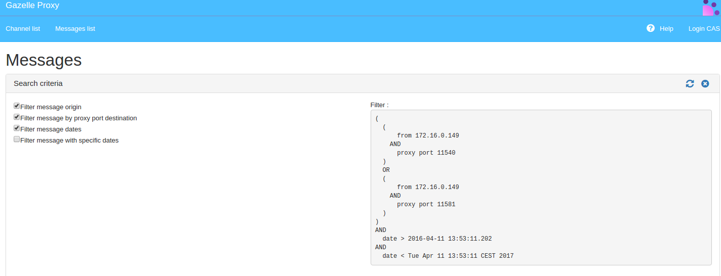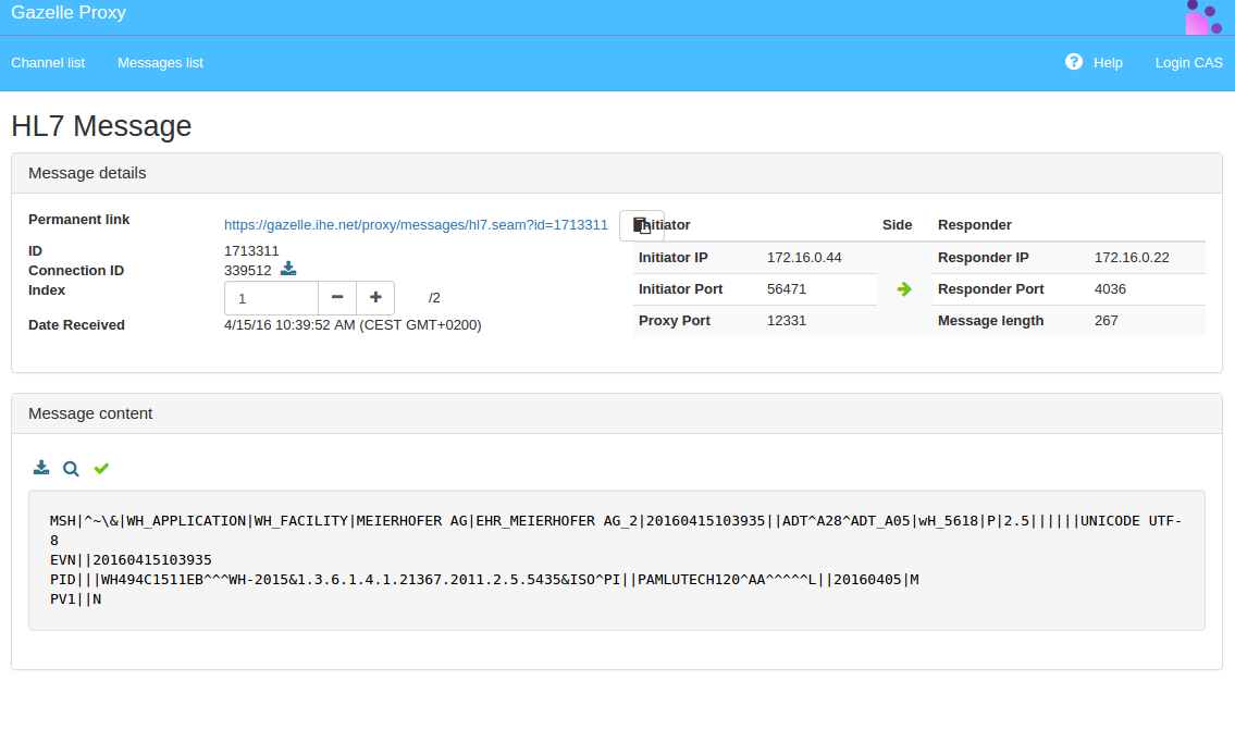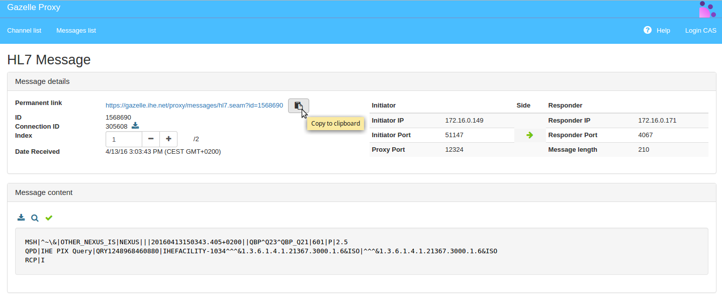 In Gazelle, if the test instance has proxy enabled, a link is available on each step. This link opens the proxy with the Gazelle step technical id as a parameter. The proxy then builds a filter to get messages matching the step and displays the matching messages.