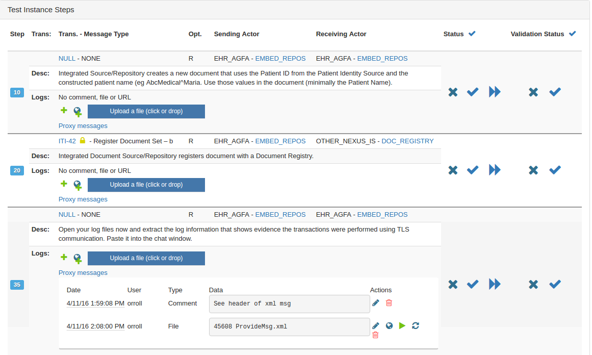 Gazelle TestManagement tools can be used in conjunction with a proxy for the capture of the messages exchanged between a test participants.