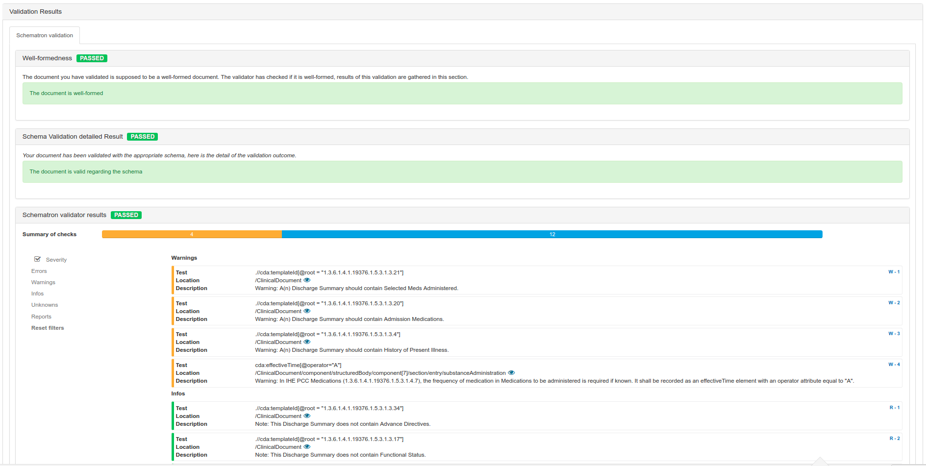 Then, if the document is of type CDA, we validate against the abstract CDA model specification (CDA validation details).