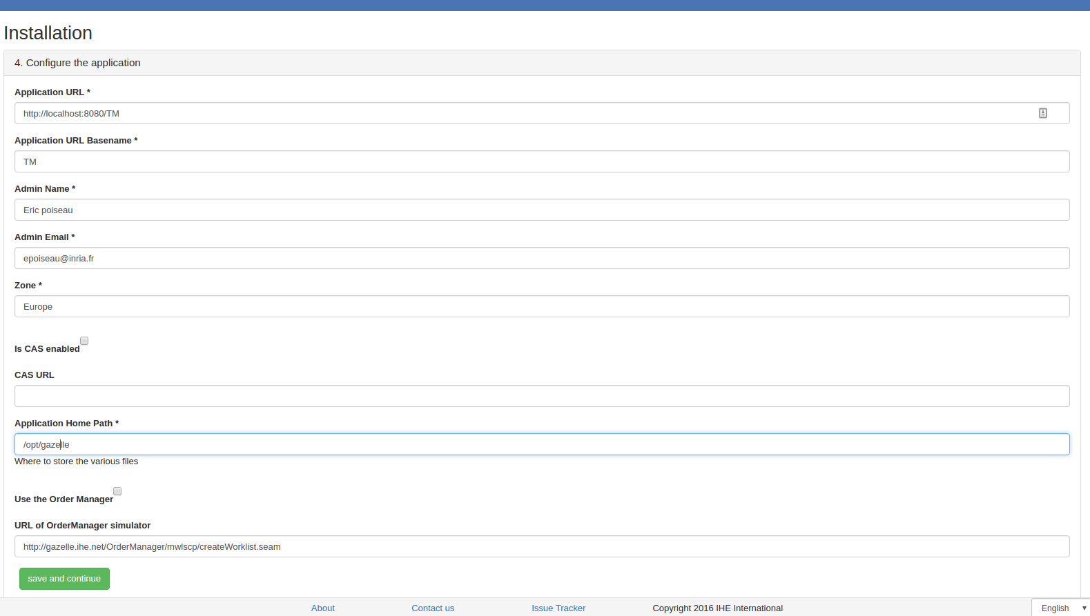 Copy the gazelle-tm.ear into the “ standalone\deployments” directory of your JBoss 7 server. Finally, start your server. When the application is deployed, open a browser and go to http://yourserver/gazelle. If the deployment and the database initialization are successful you should see the home page.